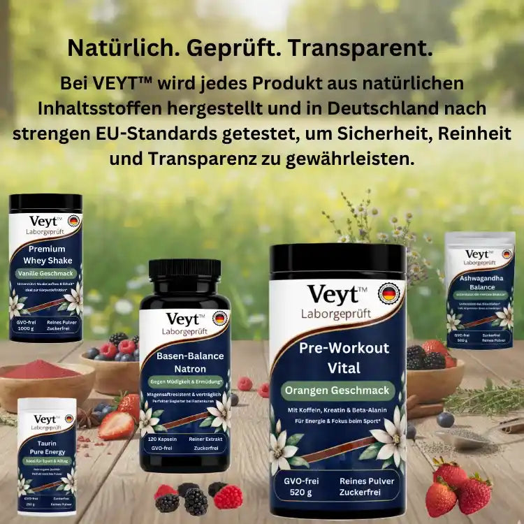 Wir bei Veyt sind davon überzeugt, dass wahre Gesundheit bei der Reinheit beginnt. Ihr Körper verdient keine Kompromisse, sondern eine Unterstützung, die so natürlich und wertvoll ist wie Ihr Lebensstil.